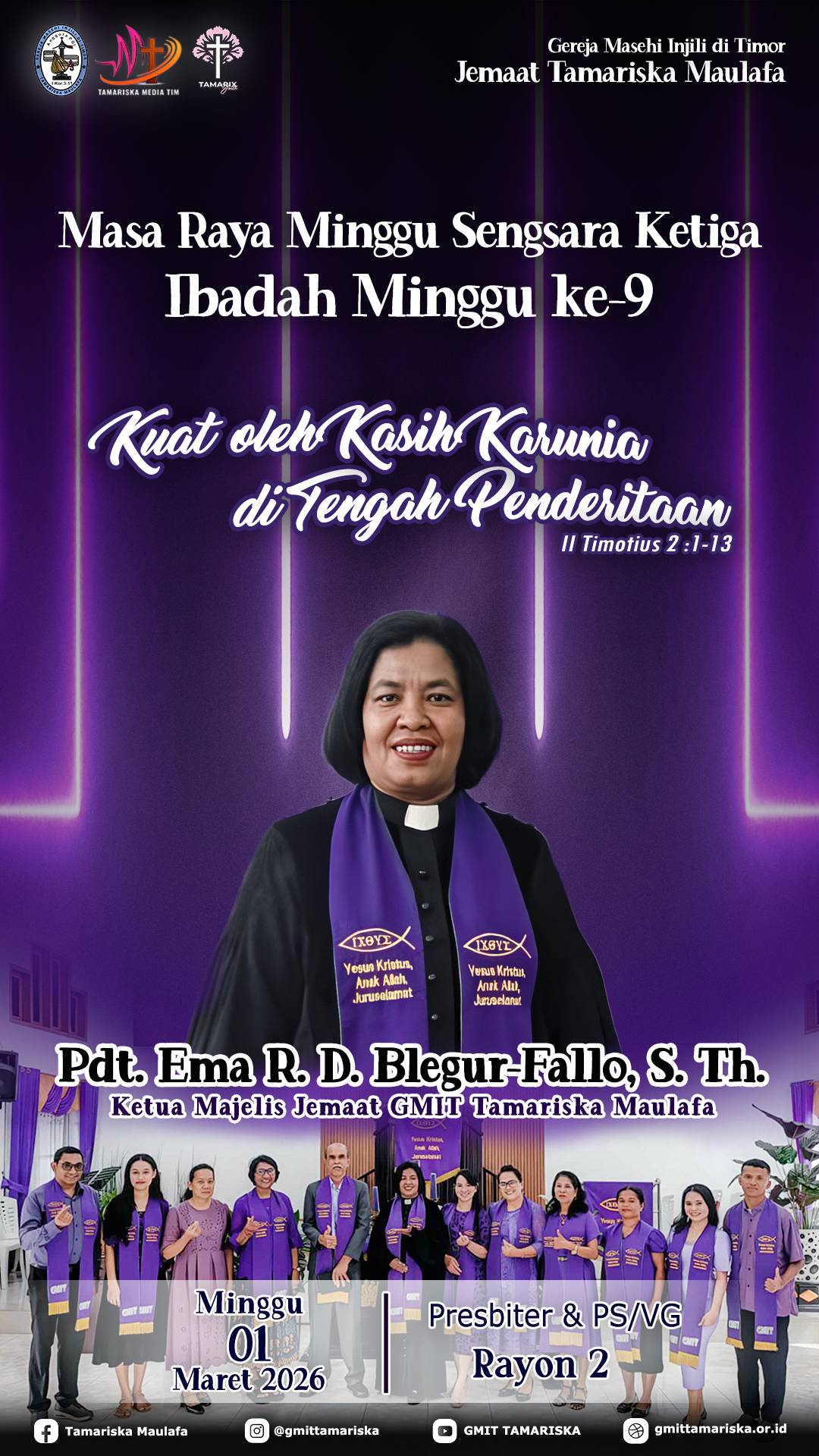 Selamat datang di Website kami GMIT TAMARISKA MAULAFA, Website ini dimaksudkan sebagai sarana publikasi untuk memberikan Informasi dan gambaran GMIT TAMARISKA MAULAFA dalam Hal Publikasi kepada Jemaat dan Masyarakat umum. Melalui keberadaan website ini kiranya jemaat dan masyarakat dapat mengetahui seluruh informasi tentang Kegiatan GMIT TAMARISKA MAULAFA di wilayah Kota Kupang. Diharapkan website ini bisa dijadikan sebagai salah satu media komunikasi yang efektif, dapat memberikan informasi, layanan yang akurat dan akuntabel untuk membangun komunikasi yang baik antara gereja dan jemaat.